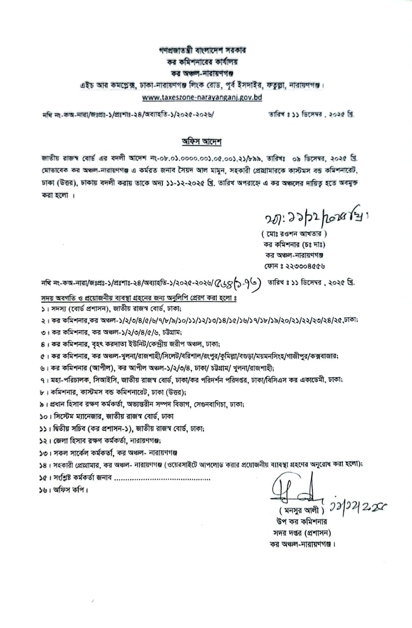 কর কমিশনারের কার্যালয়, কর অঞ্চল-নারায়নগঞ্জ এ কর্মরত সহকারী প্রোগ্রামার জনাব সৈয়দ আল মামুন কে কাস্টমস বন্ড কমিশনারেট, ঢাকা (উত্তর), ঢাকায় বদলী জনিত কারণে অবমুক্ত করণের অফিস আদেশ। Release OrderDownload